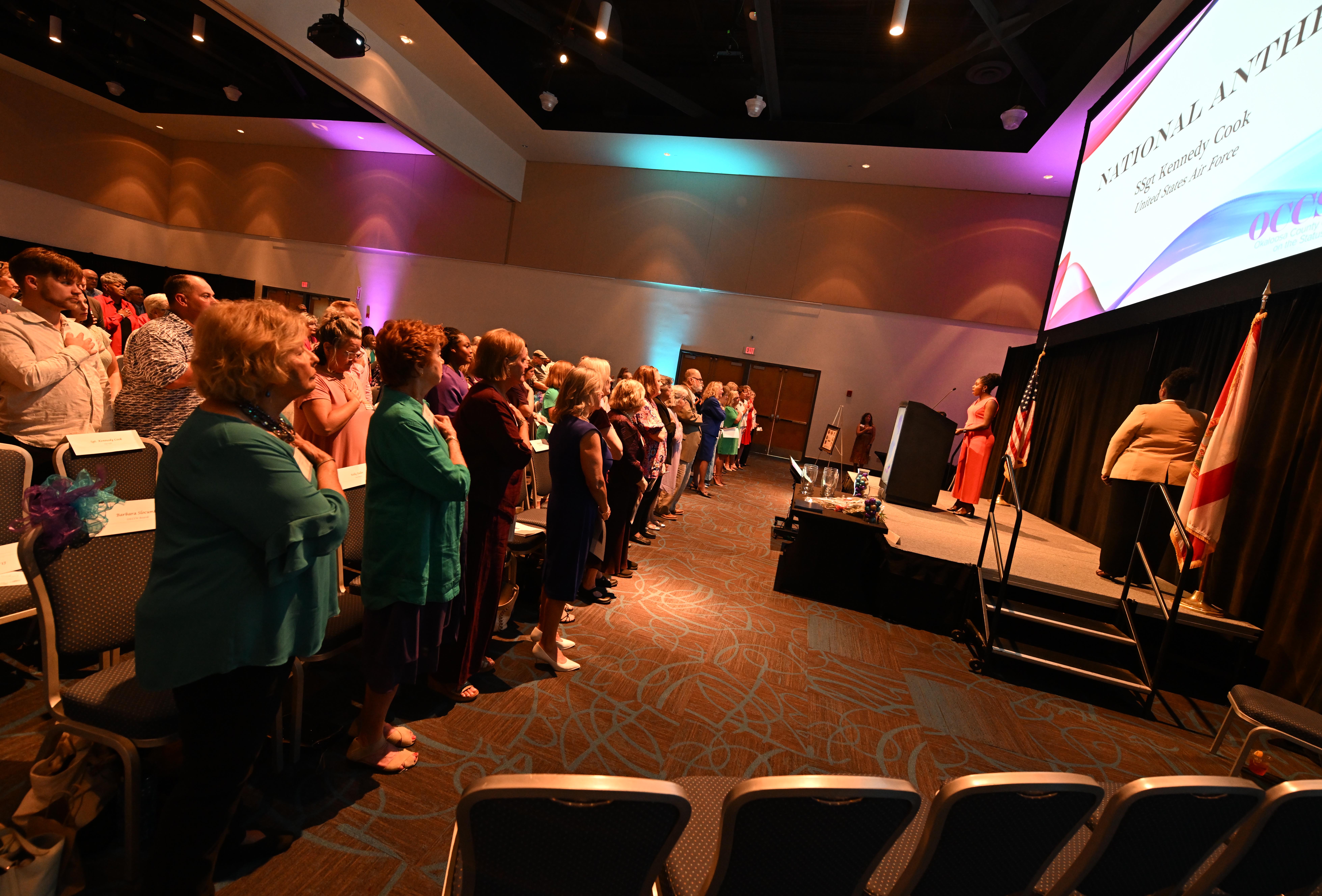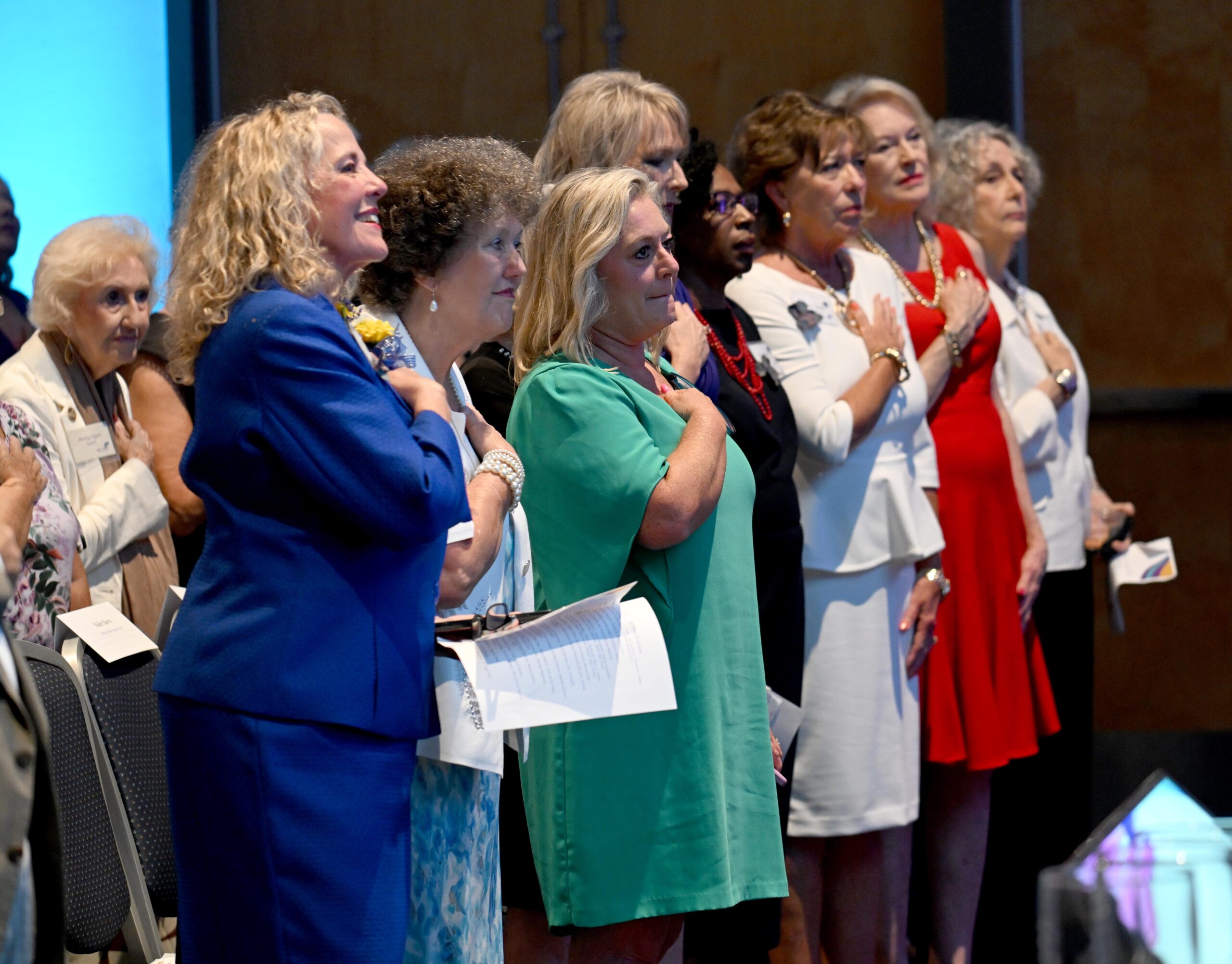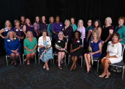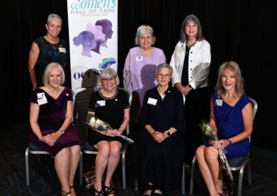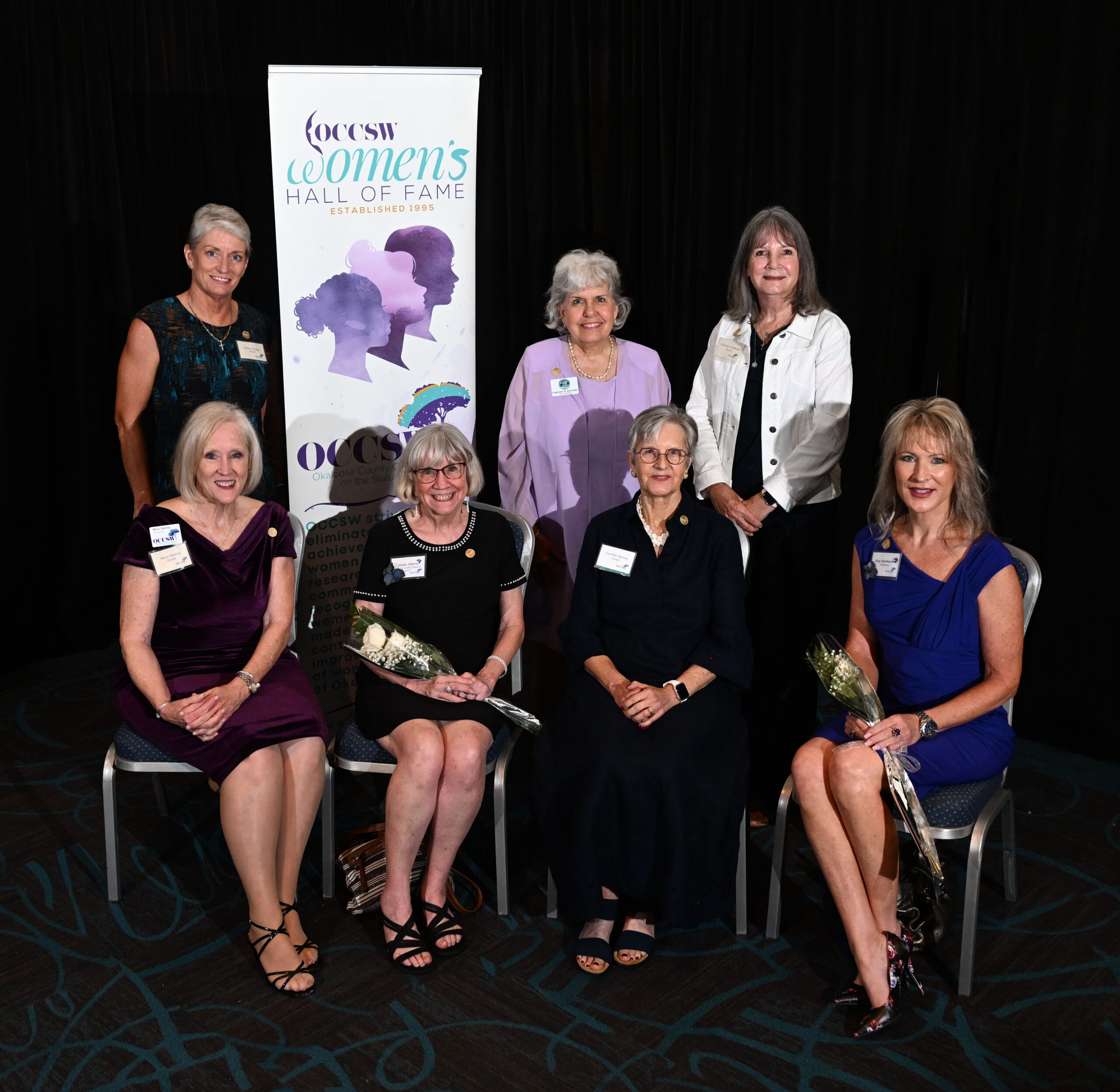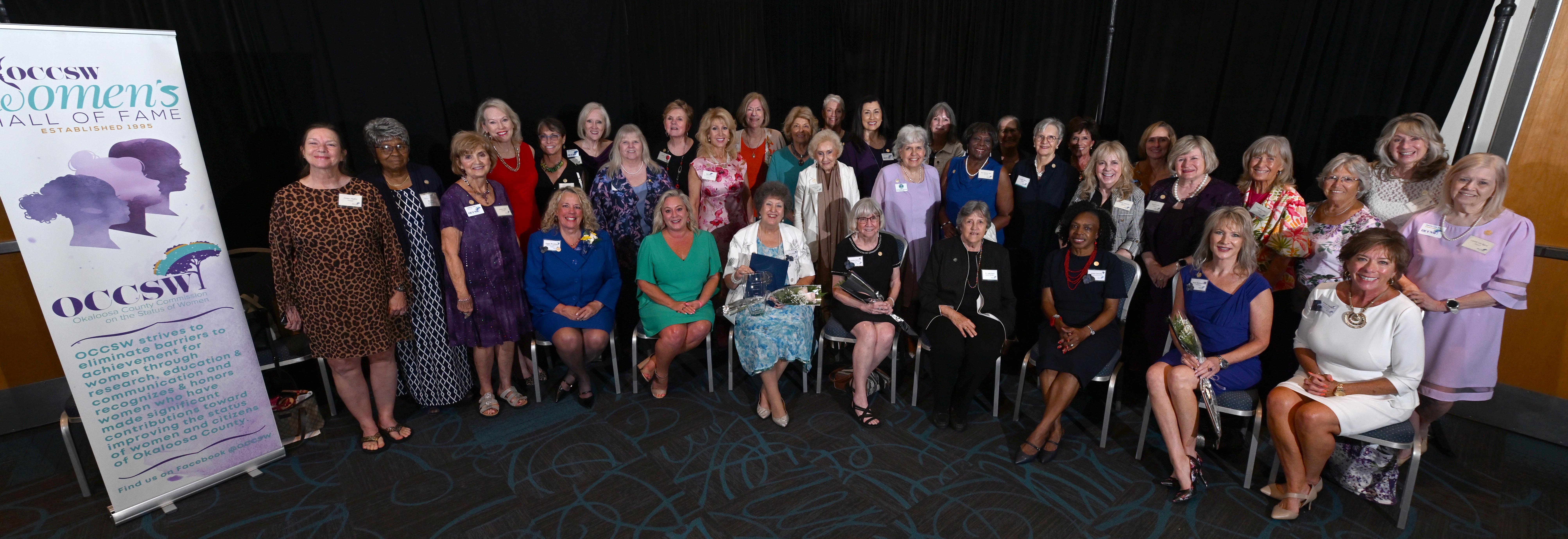 Congratulations to the 2025 Inductees into the OCCSW Women’s Hall of Fame. They are seated here: Peggy Brockman Business Professional Inductee; Linde Hamilton accepting for her mother Jenny Hamilton, Education Inductee, postumous; Sherry Harlow, Pioneer Inductee; Helen Harris, Mattie Kelley Cultural Arts Inductee; Guest Speaker, Judy Bense,UWF, a Florida Women’s Hall of Fame inductee; Eloise Stevens, Community Service Inductee; Kay Rasmussen, Military Inductee; and Donna Tashik, Carolyn Spencer Humanitarian Inductee. Standing behind them are the members of the Okaloosa County Commission on the Status of Women.