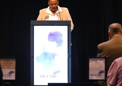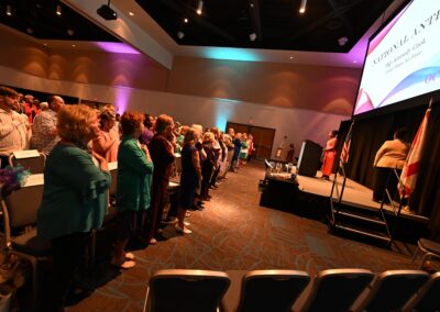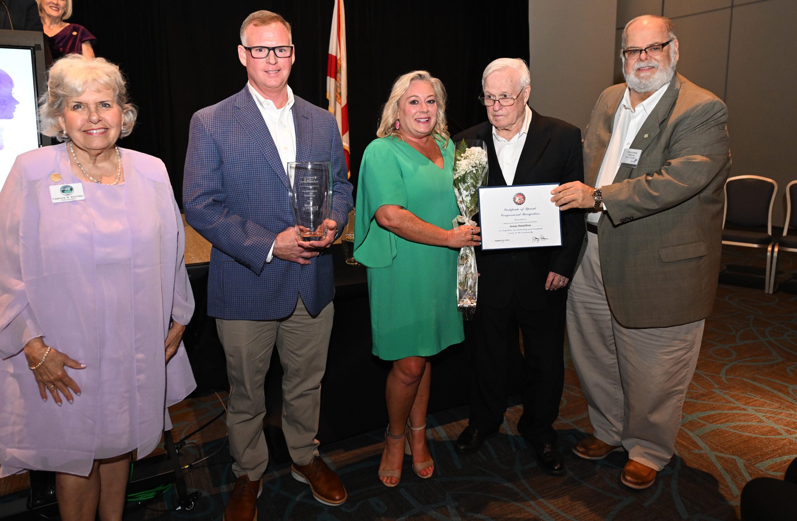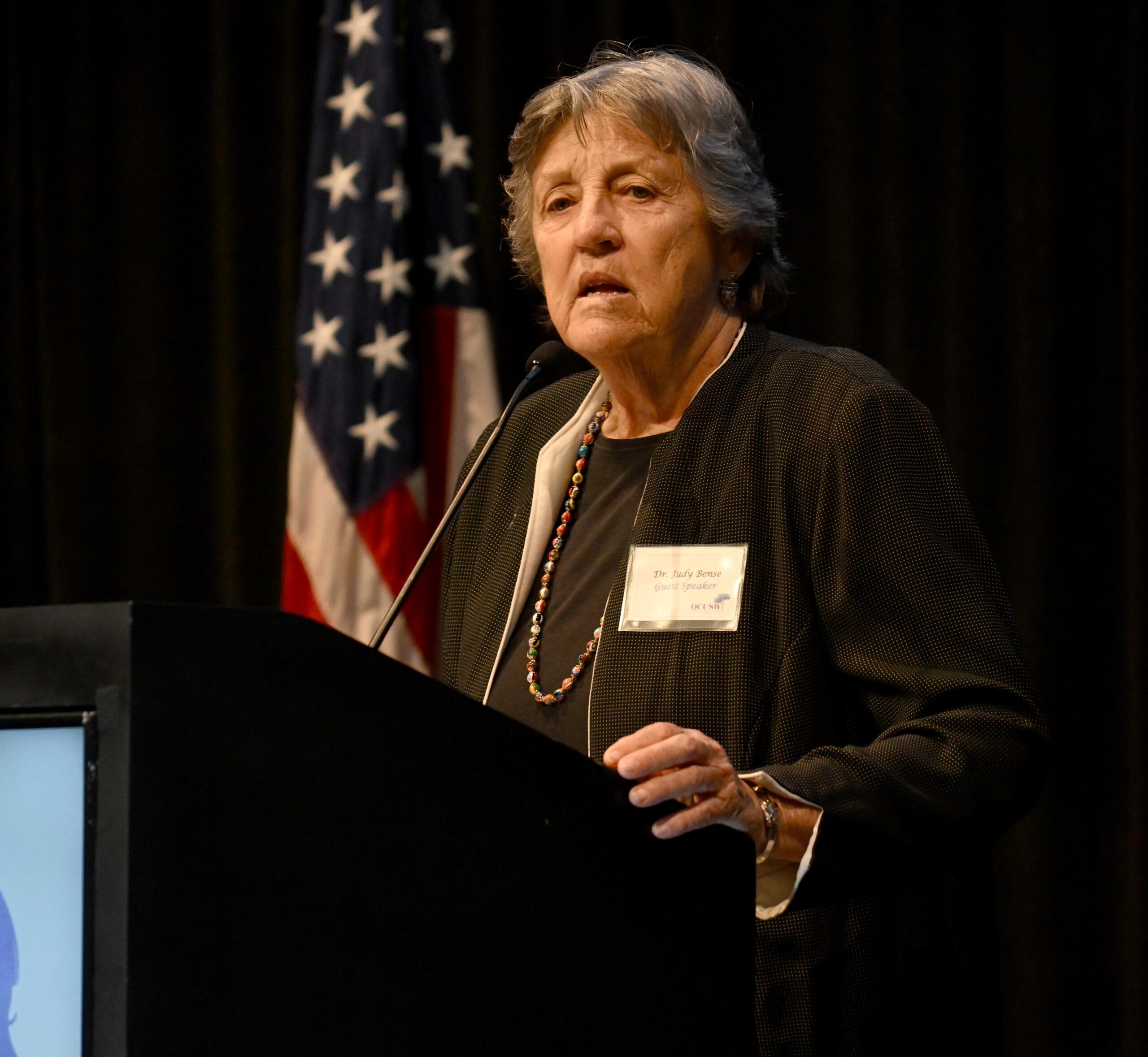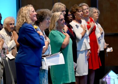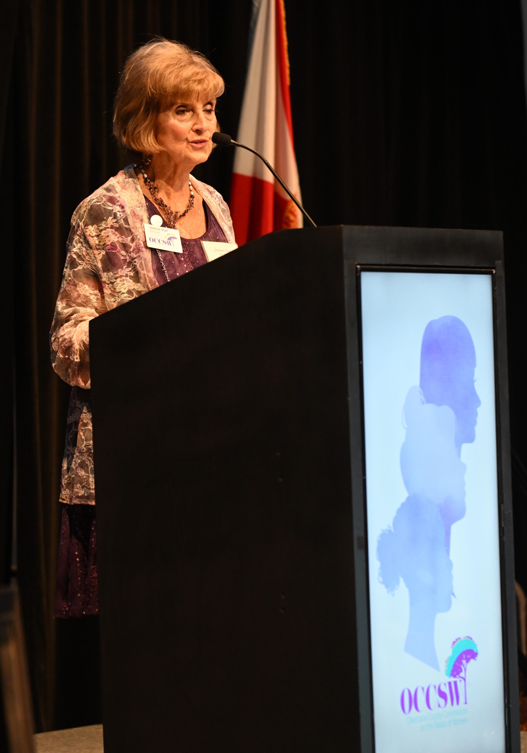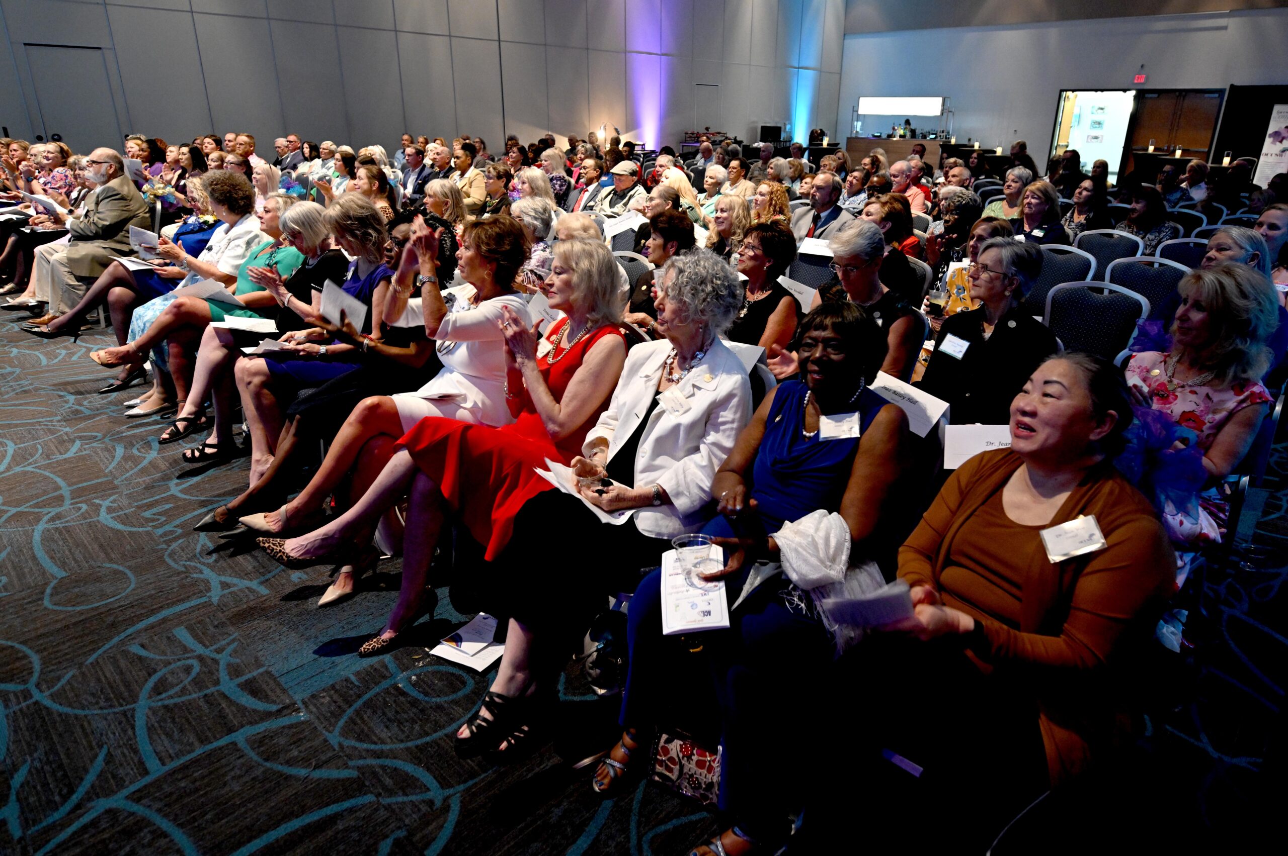 Congratulations to the 2025 Inductees into the OCCSW Women’s Hall of Fame. They are seated here: Peggy Brockman Business Professional Inductee; Linde Hamilton accepting for her mother Jenny Hamilton, Education Inductee, postumous; Sherry Harlow, Pioneer Inductee; Helen Harris, Mattie Kelley Cultural Arts Inductee; Guest Speaker, Judy Bense,UWF, a Florida Women’s Hall of Fame inductee; Eloise Stevens, Community Service Inductee; Kay Rasmussen, Military Inductee; and Donna Tashik, Carolyn Spencer Humanitarian Inductee. Standing behind them are the members of the Okaloosa County Commission on the Status of Women.